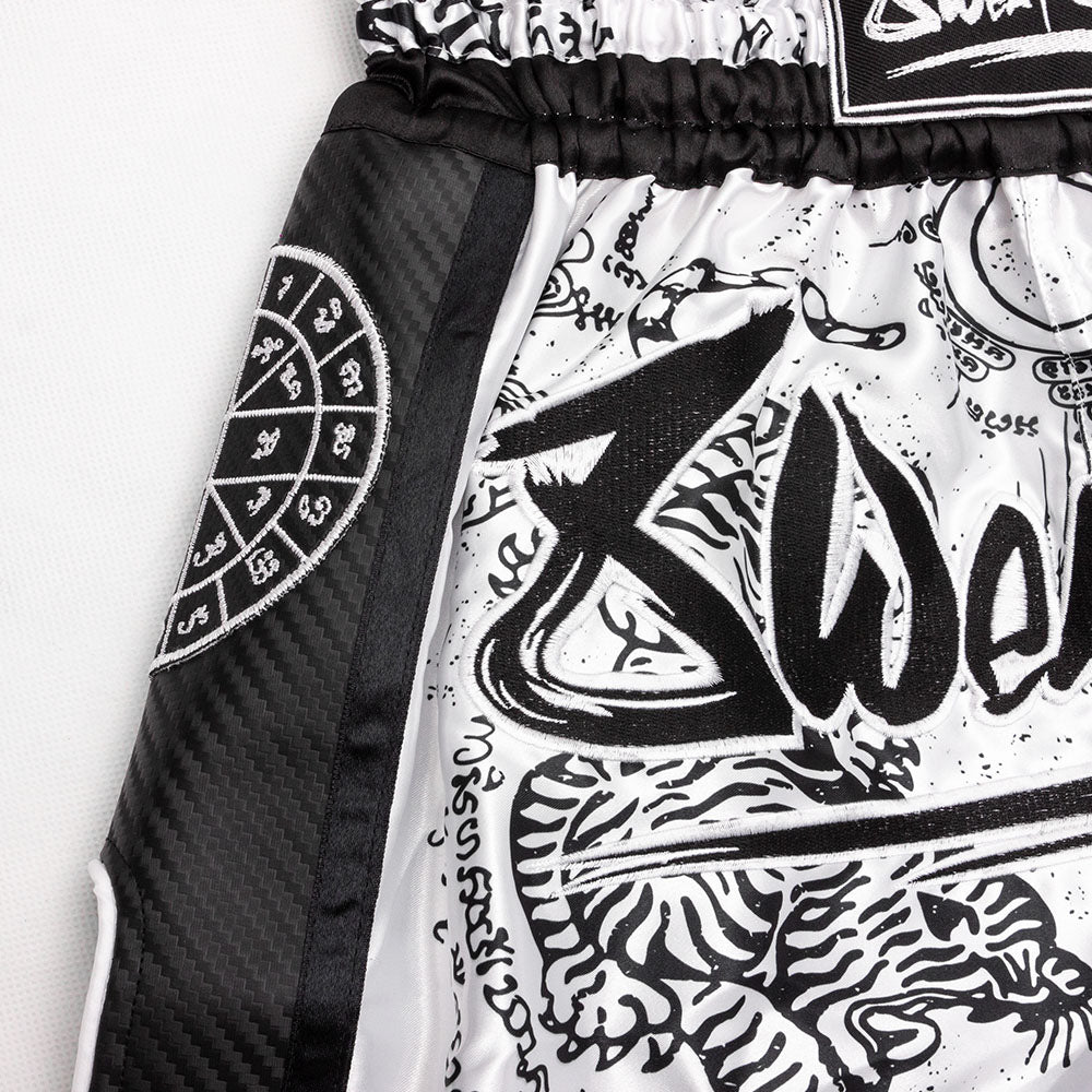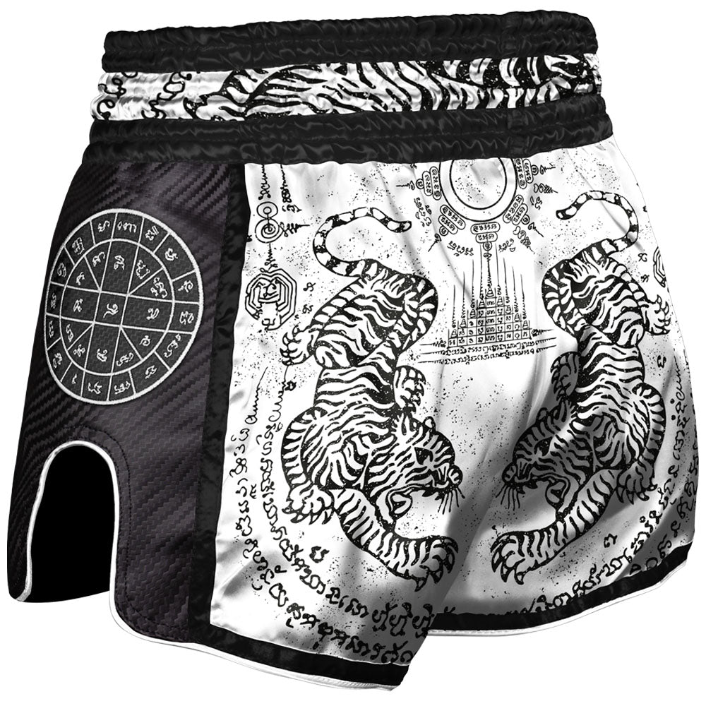 8weapons Kickboksbroek Carbon Sak Yant Tigers White