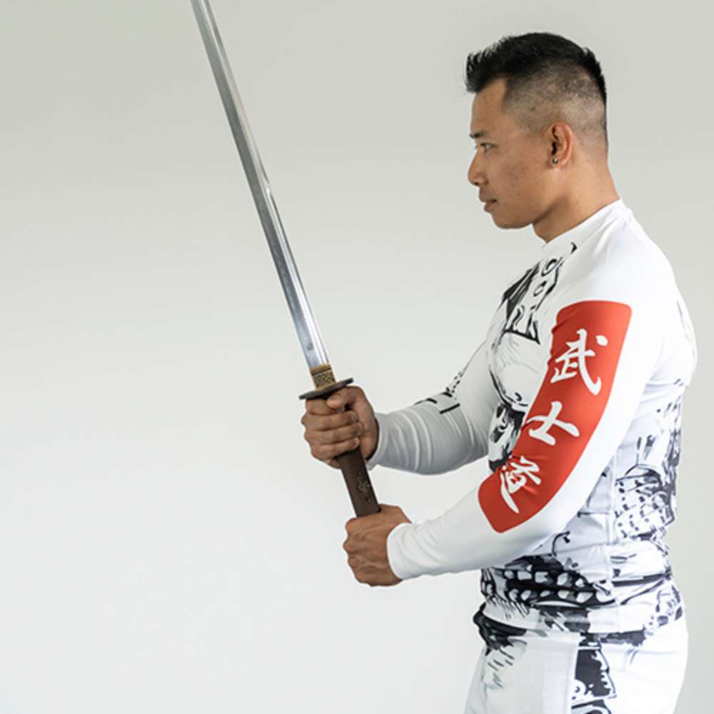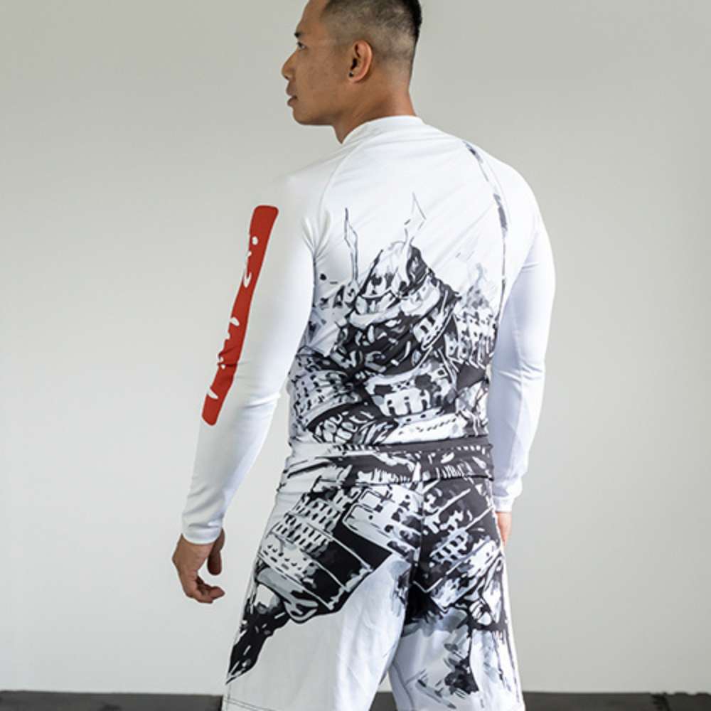 De Bushidō code staat duidelijk centraal op dit design. Een machtige samurai krijger afgebeeld over de gehele set maakt dit design écht uniek. De rug van de rashguard en de shorts lopen in elkaar over.Al onze rashguards zijn van hoge kwaliteit voor zowel comfort als duurzaamheid. Om dat zo te houden was je ze op een fijn programma, niet te warm en niet met shorts samen (de valcro sluitingen beschadigen de fijne rashguards).