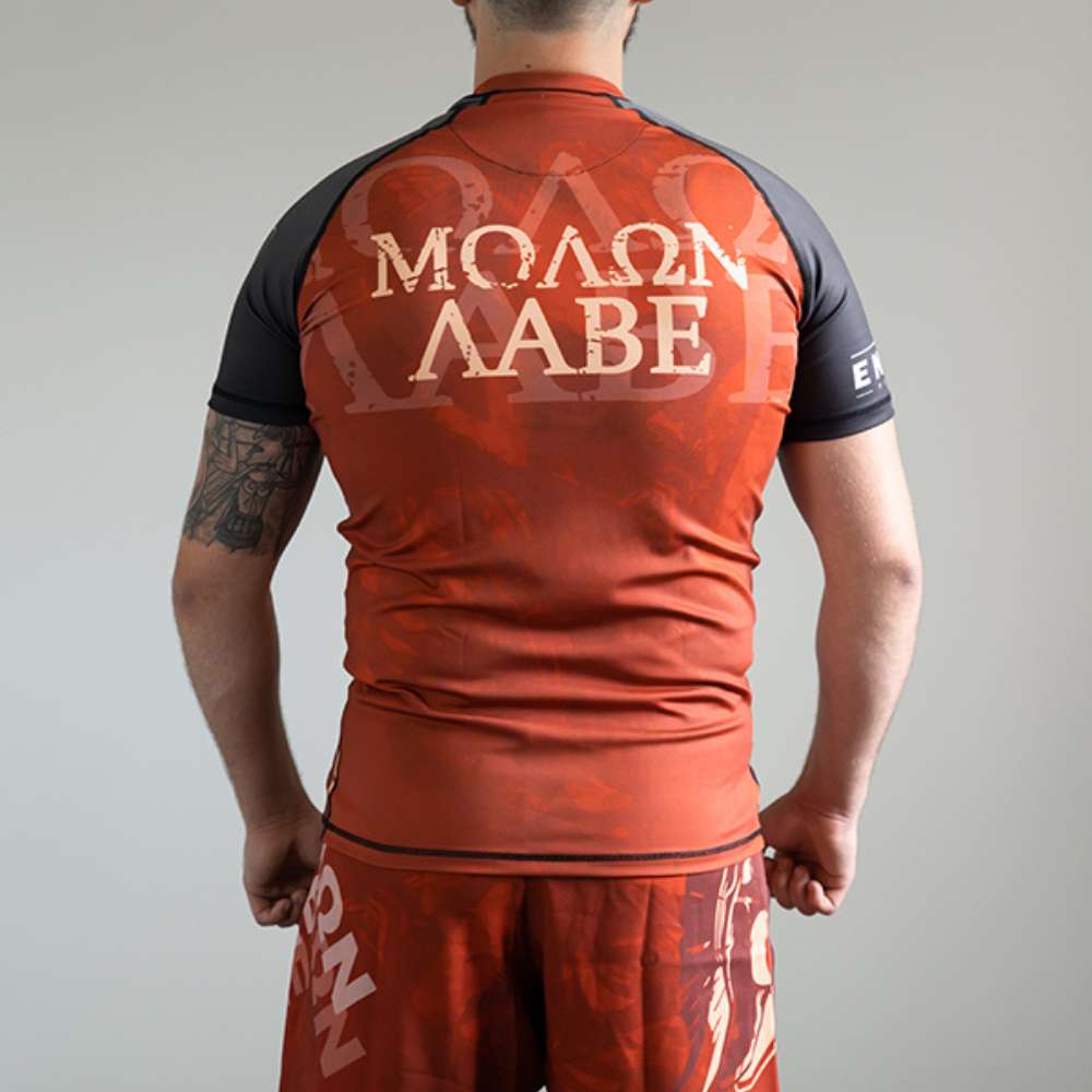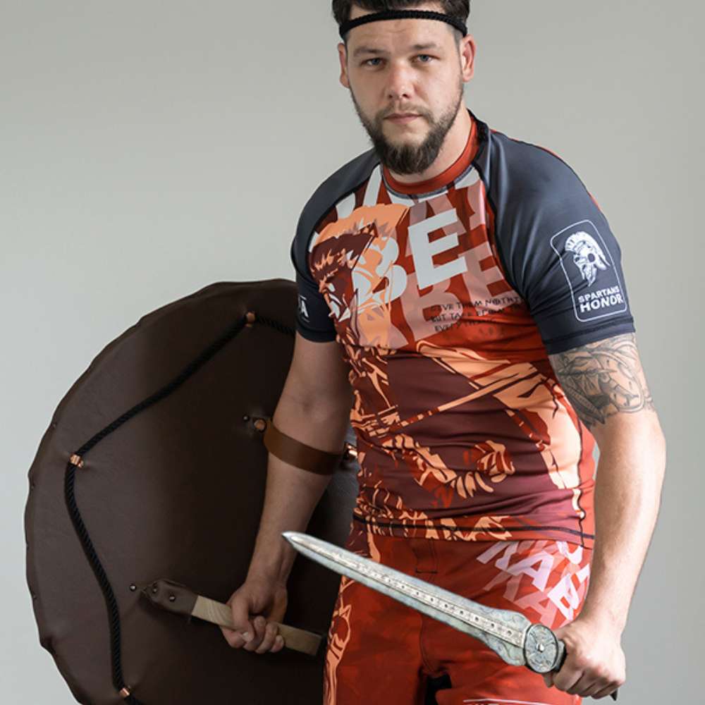 ‘Kom ze maar halen!’ is wat koning Leonidas schreeuwde tegen de Perzische invasie toen hij gevraagd werd zijn wapens neer te leggen. De iconische Spartaanse krijgers worden geëerd in deze designs. This is Sparta!Al onze rashguards zijn van hoge kwaliteit voor zowel comfort als duurzaamheid. Om dat zo te houden was je ze op een fijn programma, niet te warm en niet met shorts samen (de valcro sluitingen beschadigen de fijne rashguards).