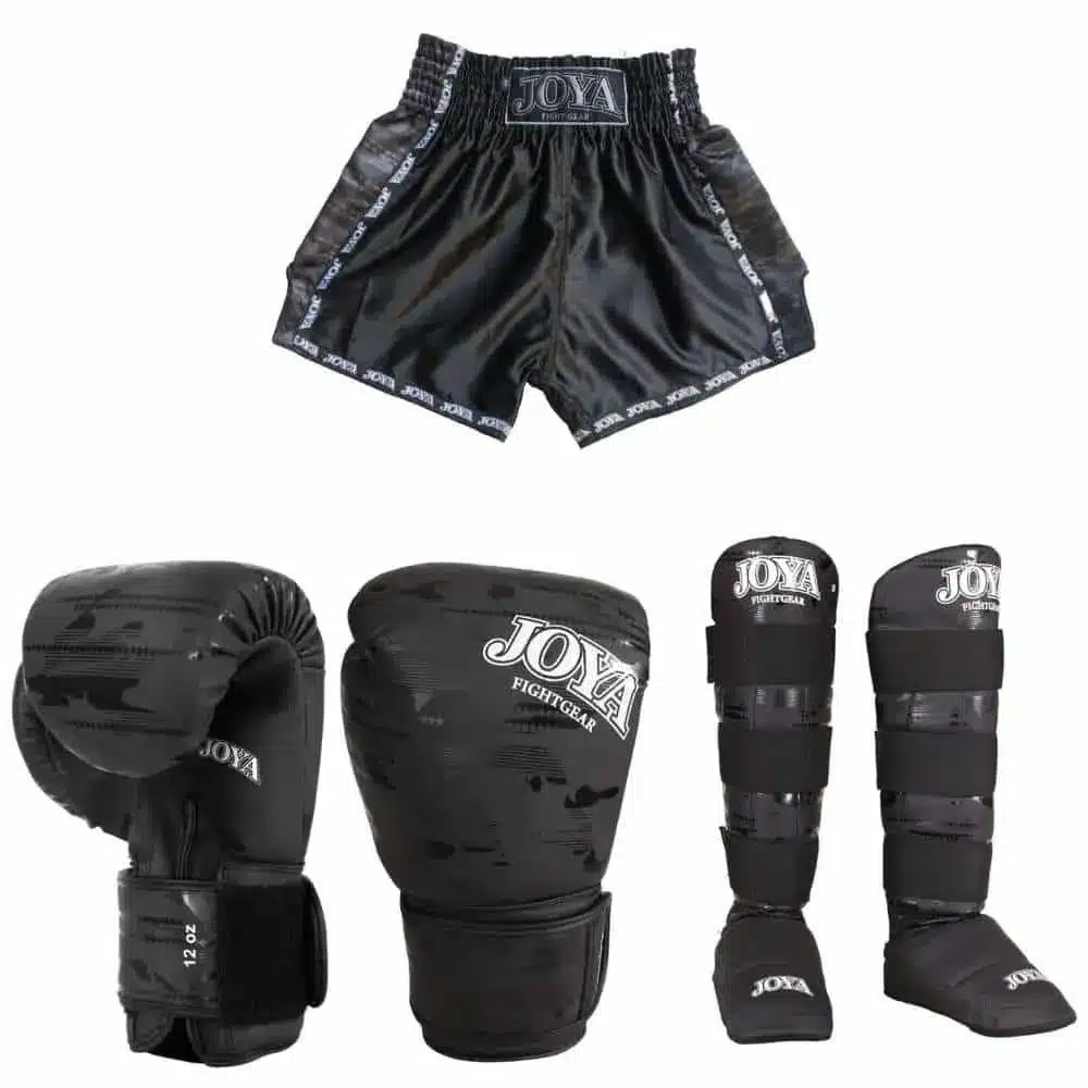 Deze complete set van Joya is speciaal gemaakt voor kinderen die willen trainen als echte kampioenen. De set ziet er stoer uit met een camo ontwerp en biedt alles wat je nodig hebt voor een goede en veilige training. De spullen zijn met de hand gemaakt en van sterke kwaliteit.