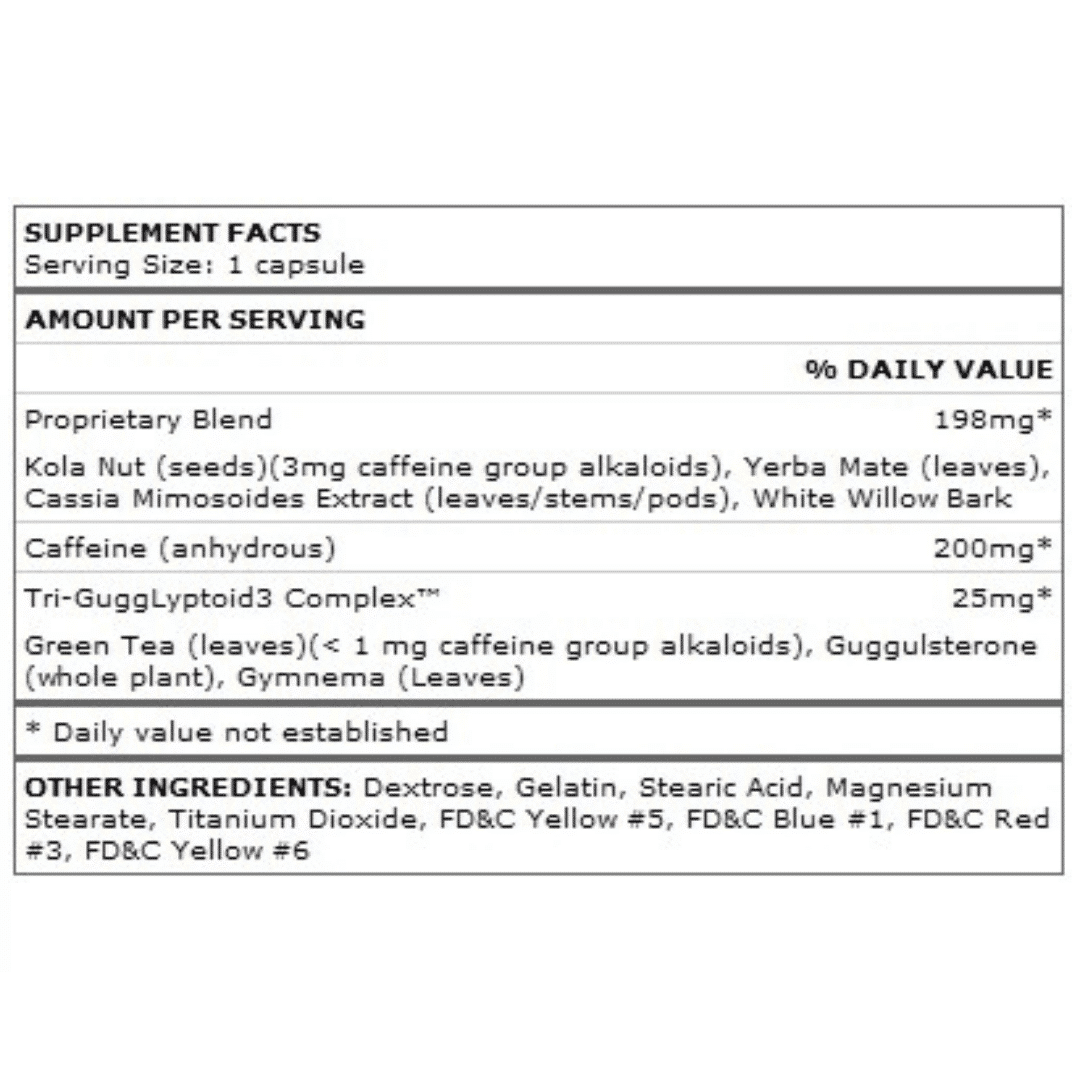 Waarschuwing: Deze voedingssupplementen zijn niet geschikt voor personen beneden de 18 jaar. Raadpleeg eerst een deskundige bij gelijktijdig gebruik van andere middelen en stimulerende middelen als cafeïne. Niet te gebruiken bij hart- en vaataandoeningen, hoge bloeddruk, diabetes, glaucoom, schildklier-, nier- of prostaatproblemen. Niet te gebruiken tijdens zwangerschap of borstvoeding. Niet langdurig (langer dan een maand) gebruiken als afslankmiddel. Aanbevolen dosering niet overschrijden.