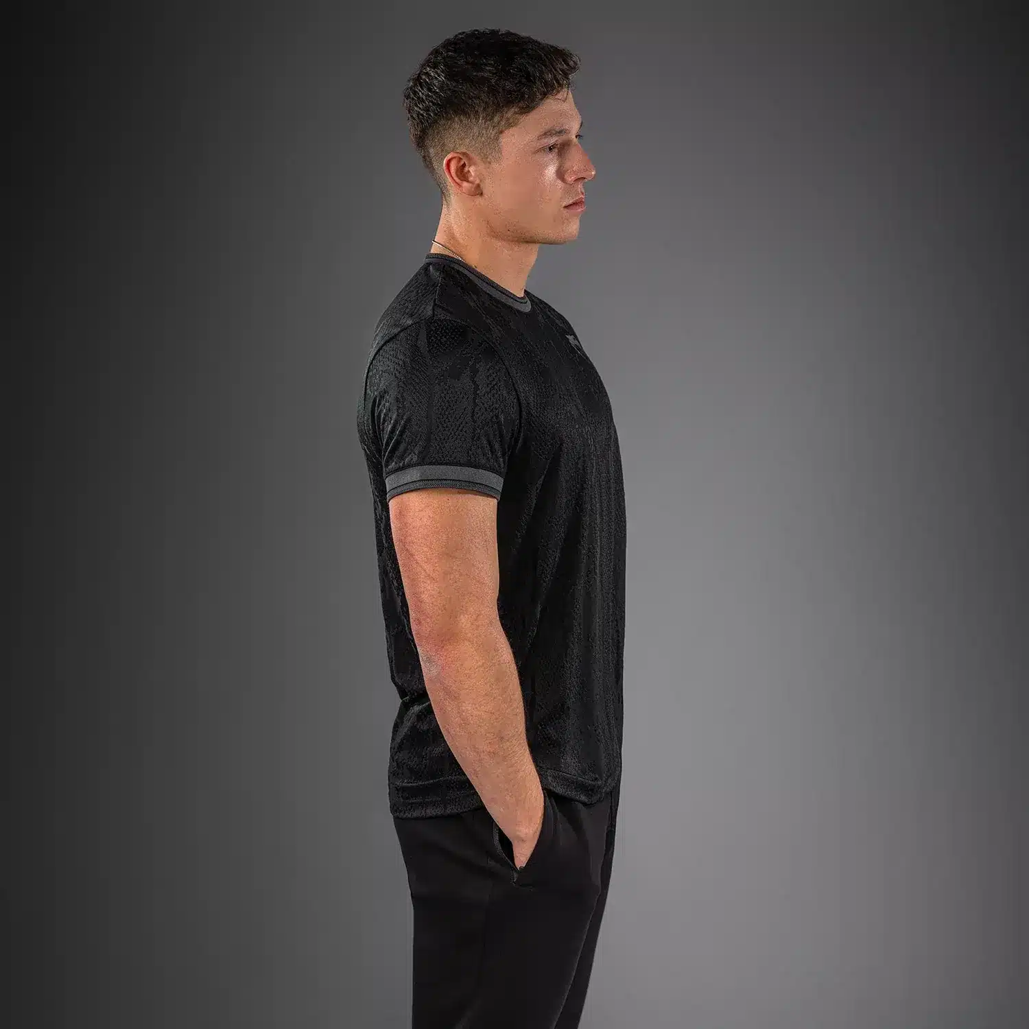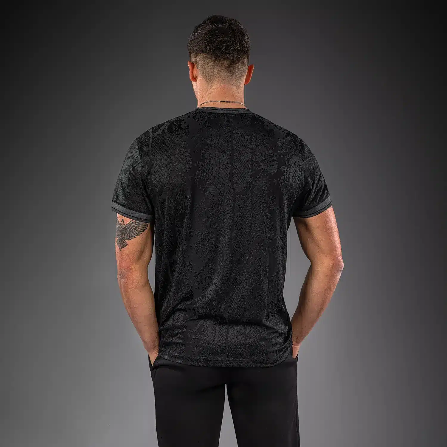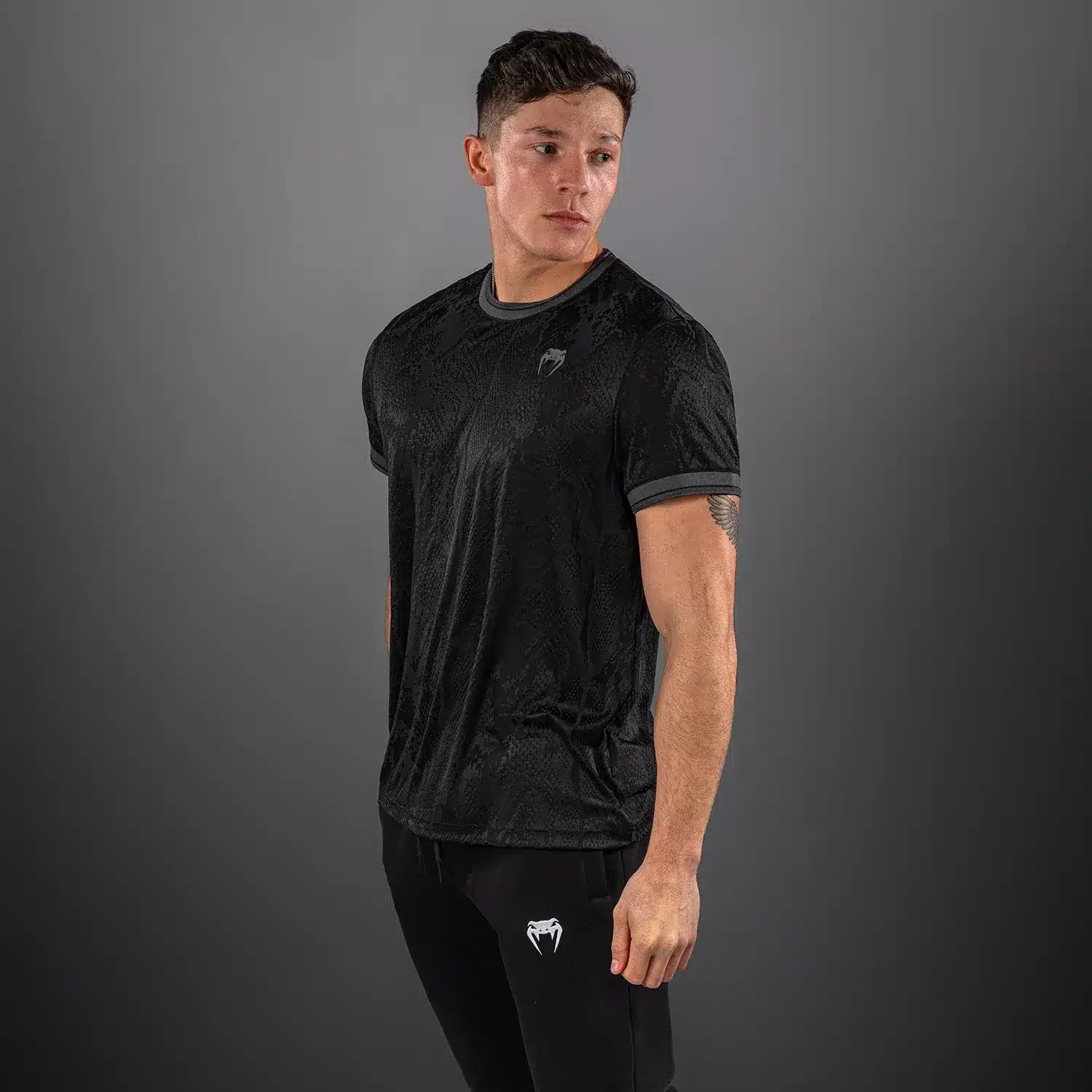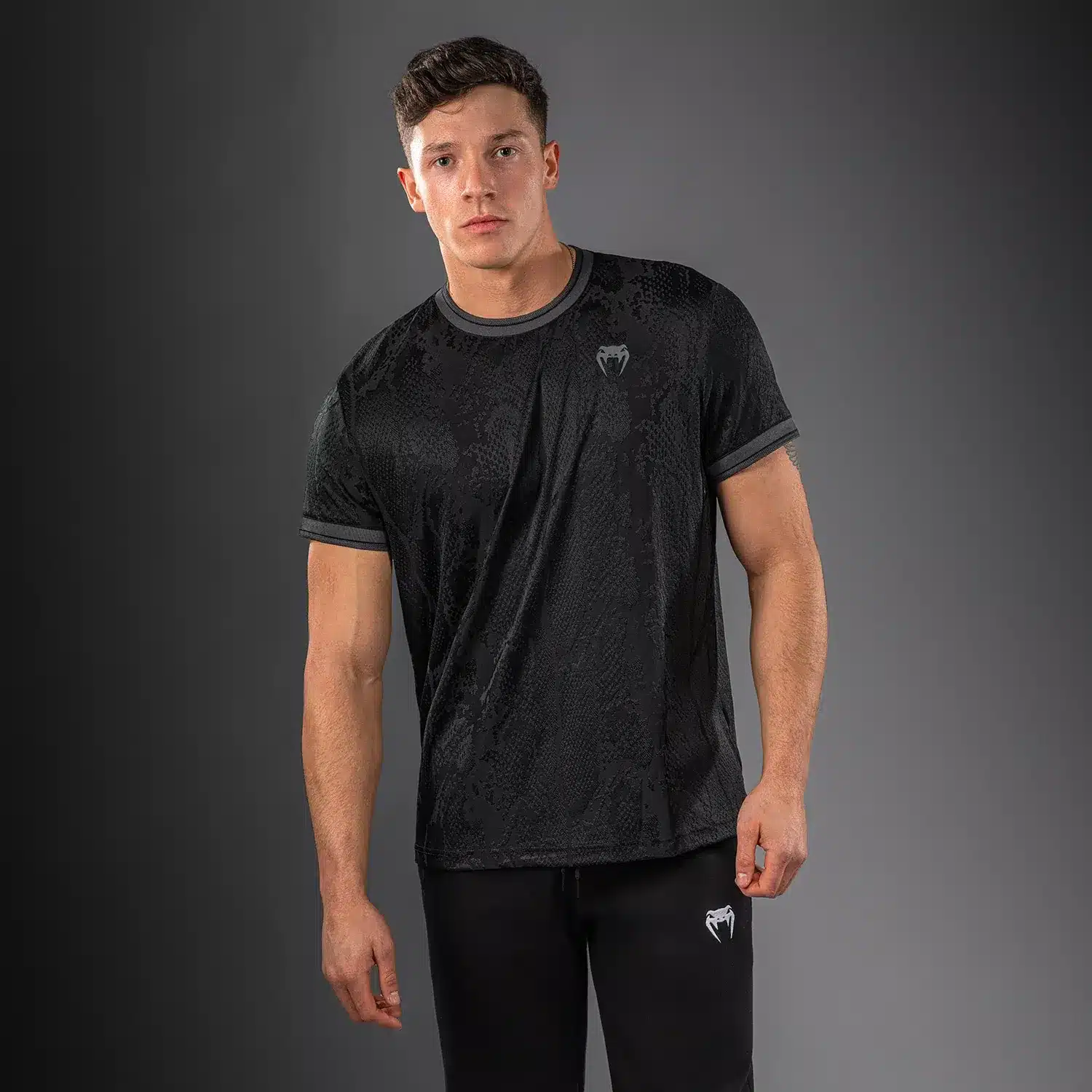 Dominantie ontmoet design in het zwarte Venum Aegis Dry Tech T-shirt. Dit premium sportshirt is ontworpen voor de veeleisende sporter die zoekt naar technische innovatie zonder in te leveren op stijl. Het volledige shirt is geweven in een subtiele jacquardstructuur, wat zorgt voor een hoogwaardig slangenhuid-effect.