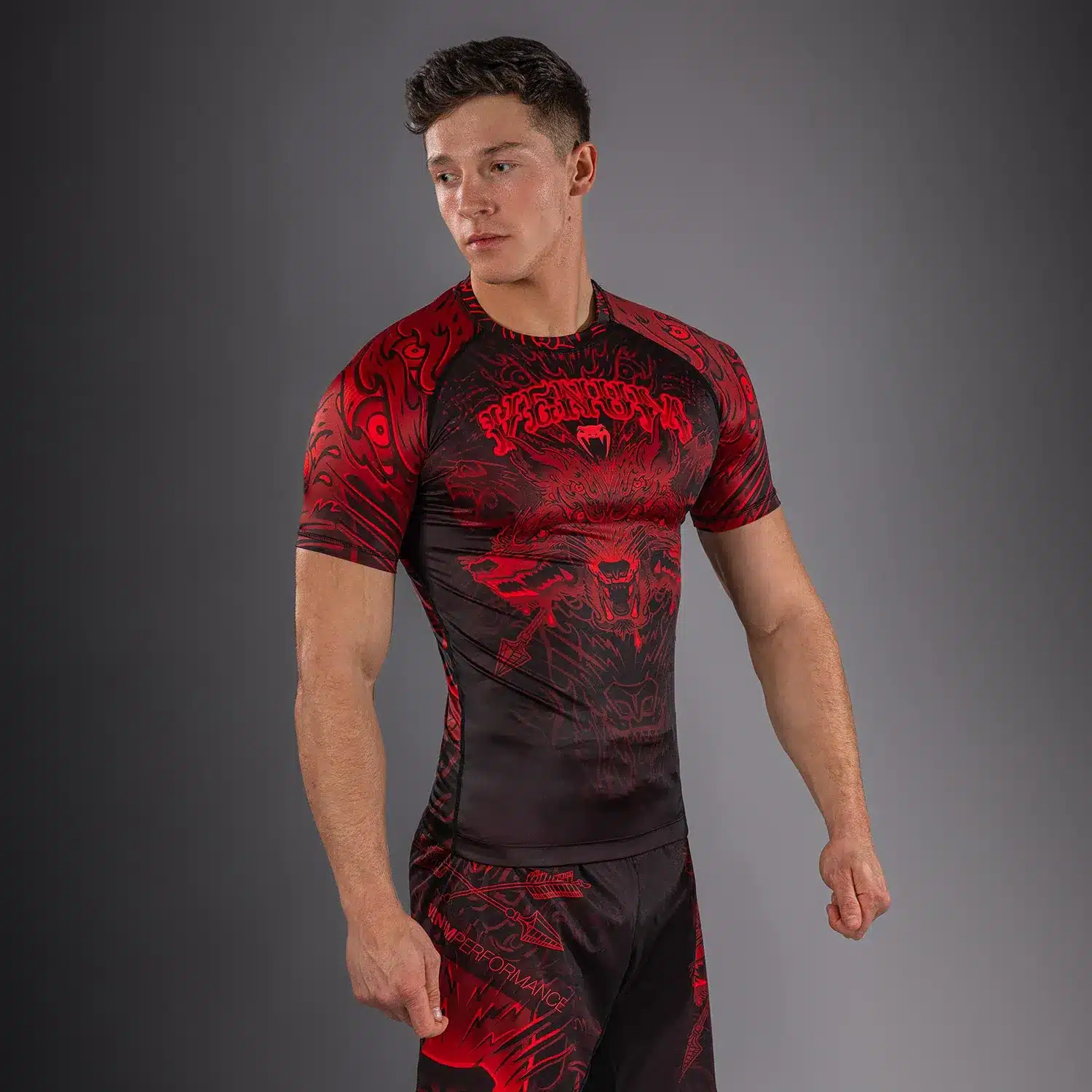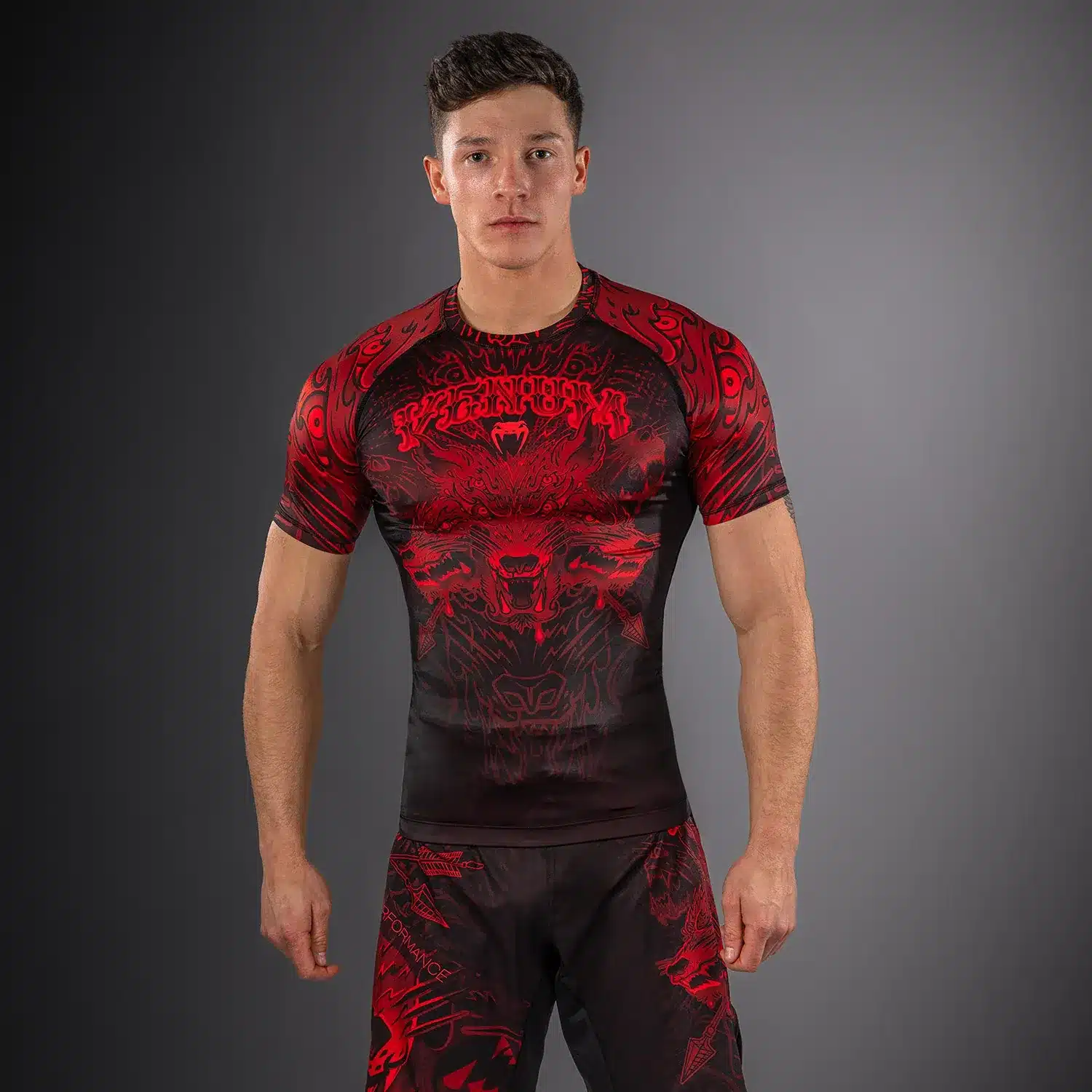 De Venum Wolf Atak Rashguard met korte mouwen voelt aan als een duurzame tweede huid en beschermt tegen schrammen en brandwonden tijdens het grapplen. Dankzij de compressiepasvorm ondersteunt hij ook het spierherstel. Lichtgewicht en flexibel, deze rashguard geeft je volledige bewegingsvrijheid tijdens grondgevechten en stoten. Versterkte naden weerstaan zelfs de meest intensieve trainingen in BJJ, MMA en de fitnesszaal.