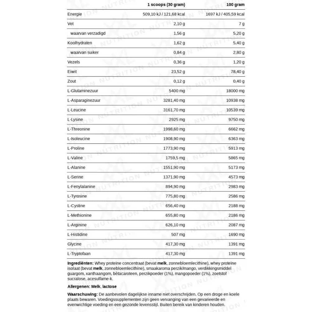 De XXL Nutrition Delicious whey is zonder gebruik van toegevoegde suikers, en slechts een kleine hoeveelheid zoetstoffen (0,17%), een proteïne shake die zó lekker is dat je hem de hele dag door wilt blijven drinken.