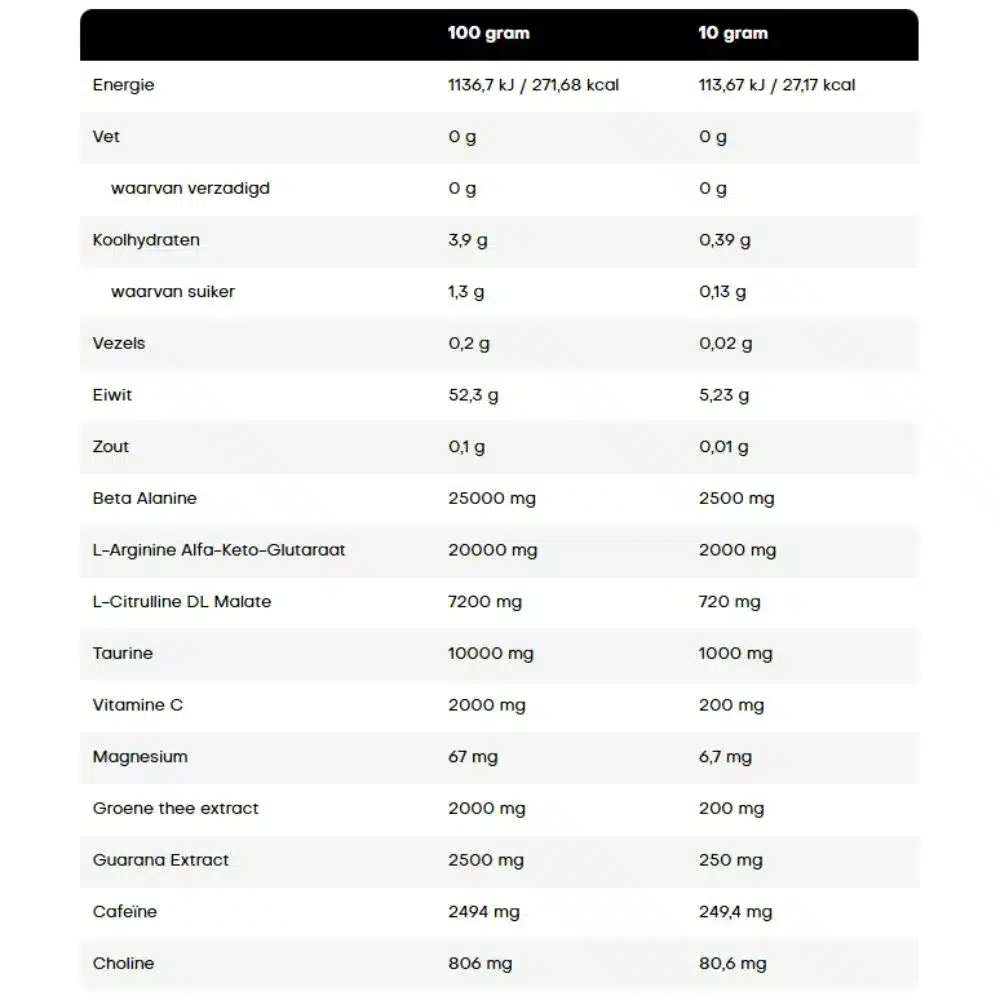 • Bewezen effectiviteit dankzij de toevoeging van beta alanine, arginine AKG en taurine