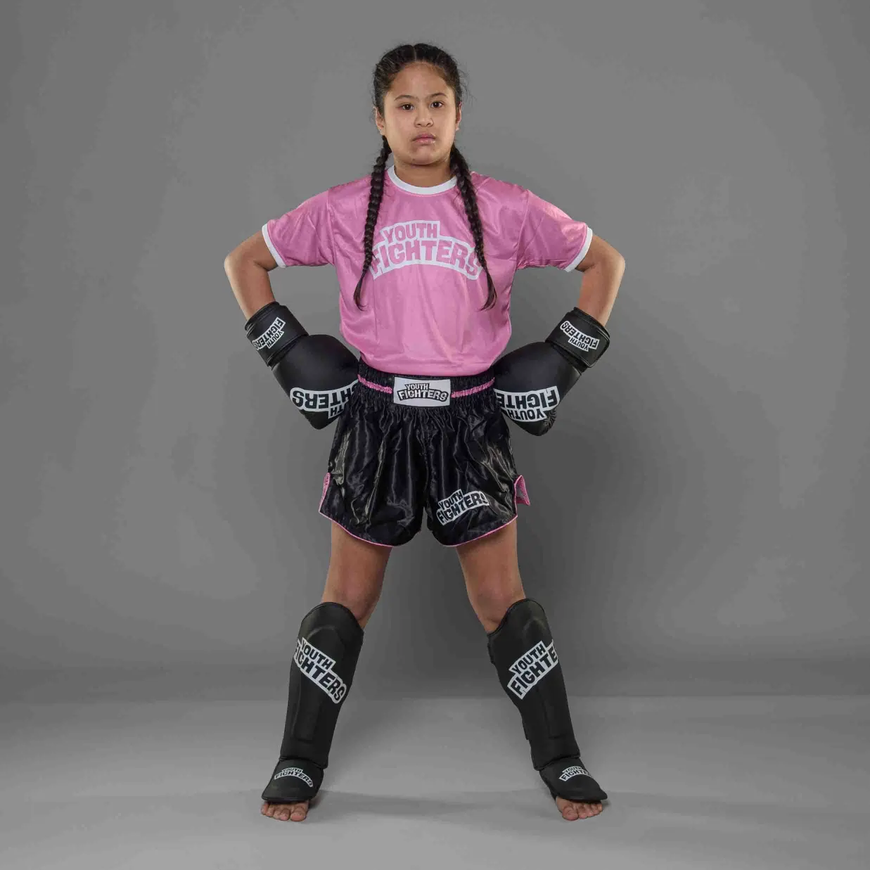 De Youth Fighters Kickboks Set Kids Pink is de ultieme complete set voor jonge strijders die kracht en stijl willen uitstralen. Deze roze set biedt alles wat een jonge kampioen nodig heeft voor een veilige training met maximale bescherming en een perfecte pasvorm. Lees meer